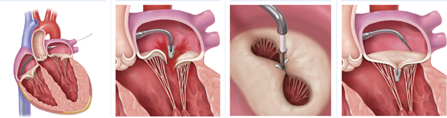マイトラクリップ治療の特徴: - 開胸手術が不要(心臓を止めません)