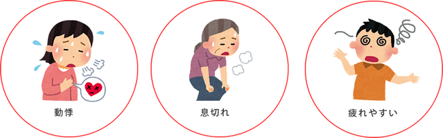 「動悸」や「息切れ」あるいは「疲れやすい」といった症状が気になる方は、お気軽にご相談ください。
